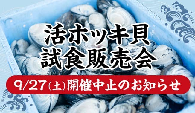 中止活ホッキ貝試食販売 9/27(土)開催中止のお知らせ